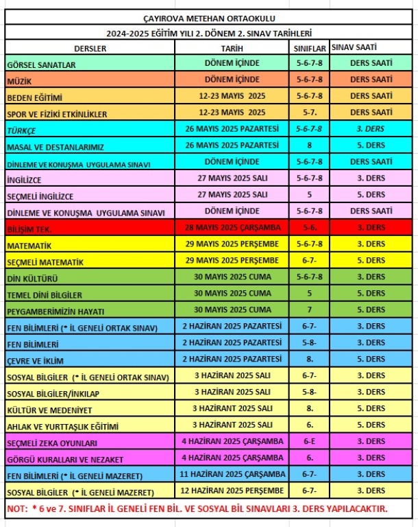 2. Dönem 2. Yazılı Sınav Takvimi yayınladı. Şimdiden tüm öğrencilerimize başarılar dileriz.